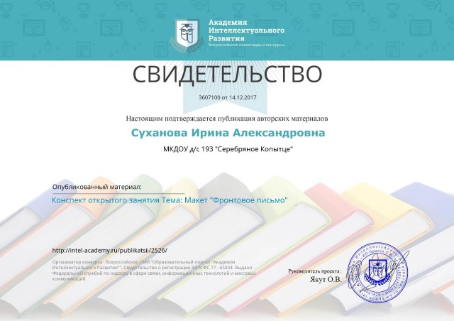 за публикацию конспекта занятия: макет "Фронтовое письмо" 14.12.17 |