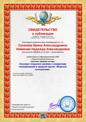 за публикацию конспекта открытого занятия с элементами театрализации "Морское путешествие" 24.02.20 |