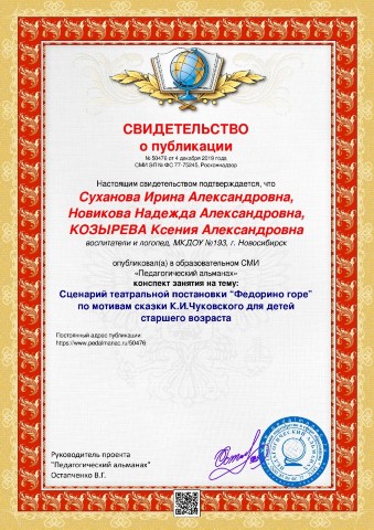 за публикацию сценария театральной постановки "Федорино горе" 4.12.19 |